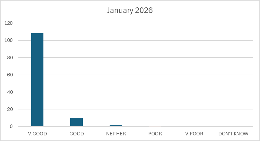 Each month we gather results from our Friends and Family test either in paper form or via SMS text messages and discuss this information and any comments that may be made as part of our monthly training.